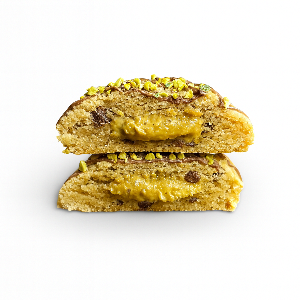 Cookie de Chocolate Dubái, una galleta intensa y lujosa elaborada con una mezcla de chocolates premium que aportan profundidad y brillo en cada bocado. Su interior suave y rico recrea una experiencia golosa y sofisticada, digna de un auténtico capricho gourmet.