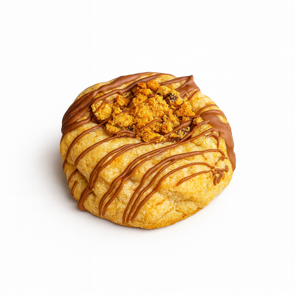 Disfruta de una experiencia única con nuestra Cookie de Lotus. La masa, perfectamente horneada, se fusiona con trozos de galleta Lotus que aportan un toque inconfundible de caramelo y especias. El centro, con un relleno de crema de Lotus, hará de esta cookie una de tus favoritas.